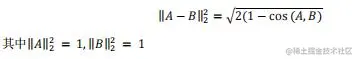 特征向量经过模长归一化之后,余弦距离和欧氏距离又存在以下的单调关系。