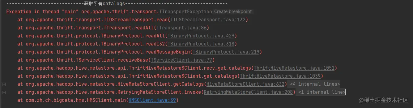 此时直接通过Java API对该HIve Metastore进行访问,如何通过Java API对HIve Metastore进行访问可参考:通过Java API获取Hive Metastore中的元数据信息