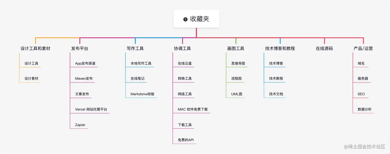 - processon:这是一个在线思维导图工具,我在整理收藏夹之前,就用 processon 做了一个思维导图,方便后面进行归纳