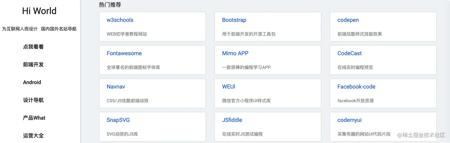 - 顶部区域:是我们的收藏夹,收藏了常用的工具和网站。基本涵盖了工作和学习的需求