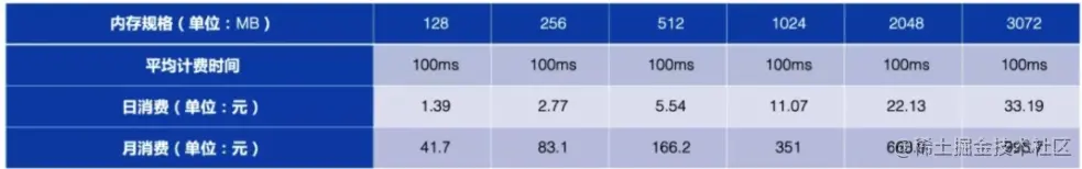 通过上表可以看到,当程序在 128MB 规格的内存中可以正常执行,如果我们错误地将内存规格设置成了 3072MB,可能每月产生的费用将会暴涨 25 倍!所以我们在上线 Serverless 应用之前,要对资源进行评估,以便得到更合理的配置来进一步降低我们的成本。
