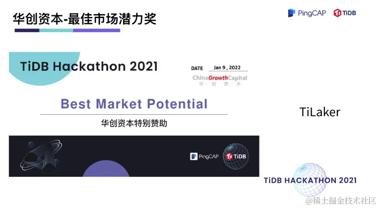 去年次 Hackathon 其实有不少跟 Flink 整合的项目,不过今年决赛就看到一个,实话我还是有点小失望的。但今年 TiLaker 做的还是挺完备的,毕竟有 Flink committer 的参与,大家给 Flink 实现了一个 CDC connector,这样能让 Flink 直接读取 TiDB 的增量数据,同步到下游了。借助 Flink 的能力,让 TiDB 更好的跟下游生态进行了打通,后面也希望有不少的应用案例能出来。