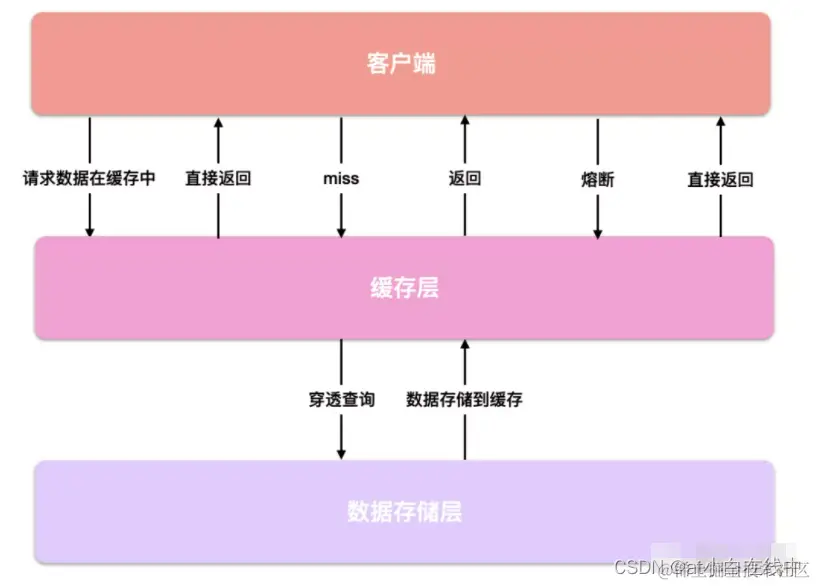 假如用户第一次访问数据库中的某些数据,我们除了将数据正常返回给用户,还会将数据存储到缓存中。当用户下一次再访问这些数据,就可以直接从缓存中获取了。从缓存里拿数据比直接查询数据库要快得多,因为操作缓存相当于直接操作内存,通过缓存可以显著地提高性能。不仅如此,使用缓存还可以实现熔断机制,当我们的数据库发生崩溃时,可以直接从缓存中返回,不再让请求走数据库查询,等到数据库修复好以后再恢复调用。