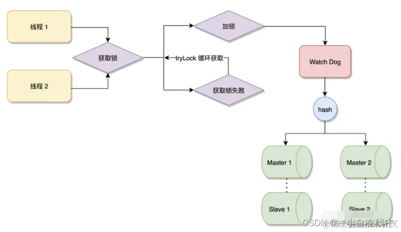 看门狗线程会定时监测锁的失效时间,如果锁快要过期了,而业务还没有执行完毕就会对锁进行“续期”操作,重新设置锁的过期时间。