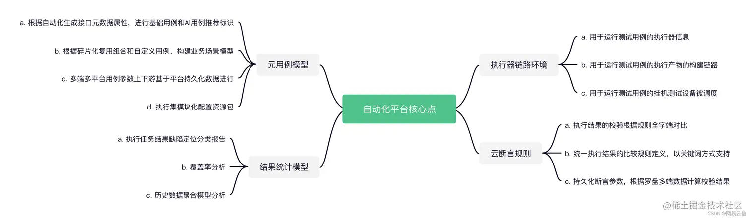 结合背景和思考,自动化平台的设计策略中包含了:执行器链路环境、云断言规则、元用例上下游,场景建模、覆盖率分析、缺陷定位及报告。
