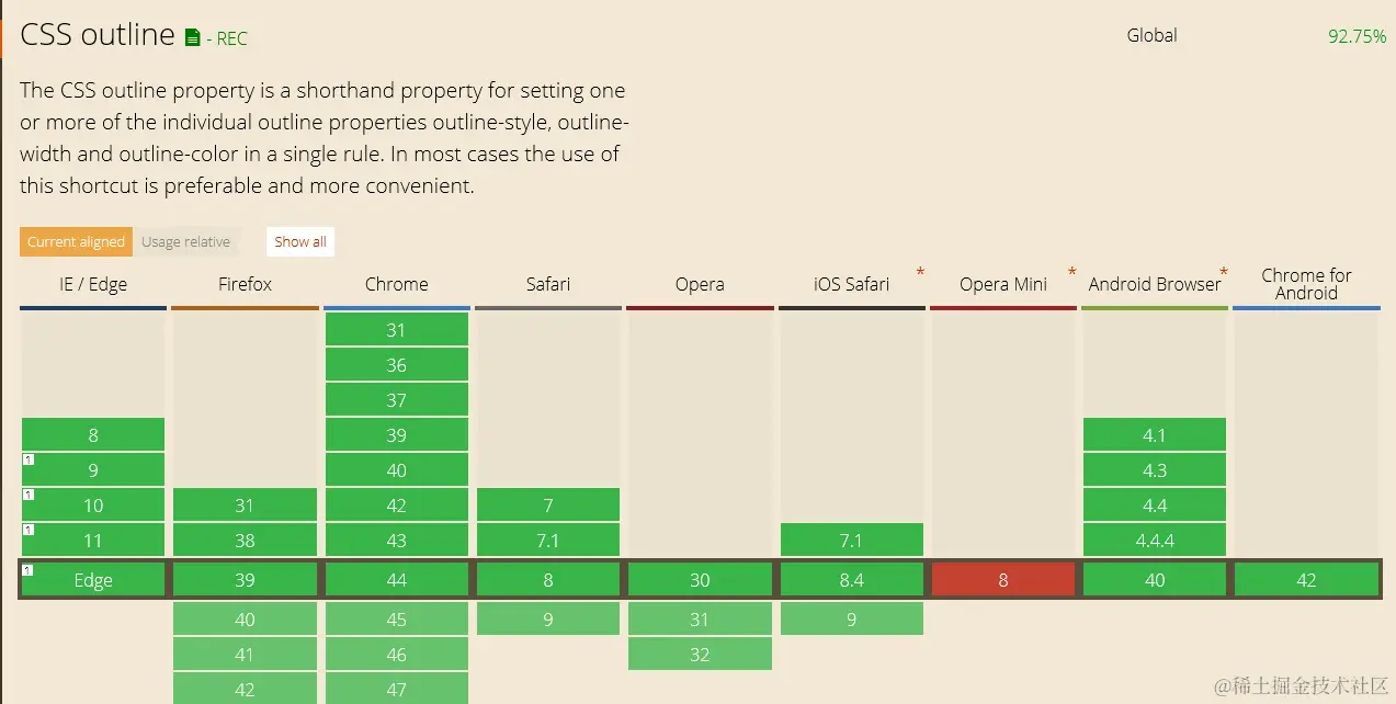 - outline在不同的格式化上下文呈现是不一样的,在块级元素里面是可以覆盖上下两边的内容的。在内联元素之可以覆盖上面的内容。