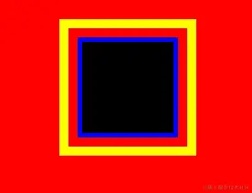 黄色的是outline,设置了outline-offset之后往外面偏移10px,露出了后面body的背景色红色,蓝色的是border。