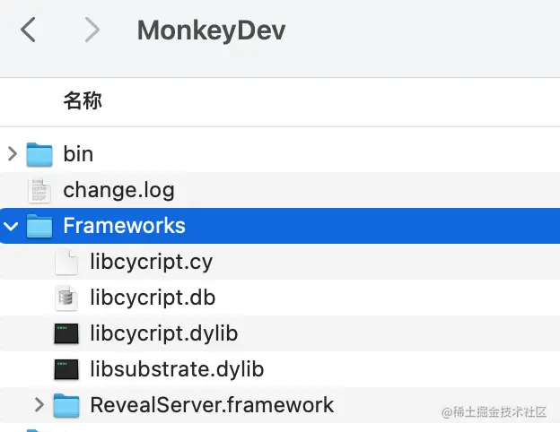 fishhook这个是自动集成的fishhook模块。MonkeyDev的Framewroks已经自动集成了RevealServer.framework和libcycript.dylib。如果选择Release编译的话是不会集成的。