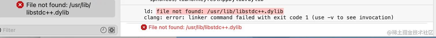 2、ld: file not found: /usr/lib/libstdc++.dylib 错误