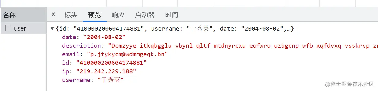 最后启动服务 yarn run dev || npm run dev ,访问刚刚的那个user接口
