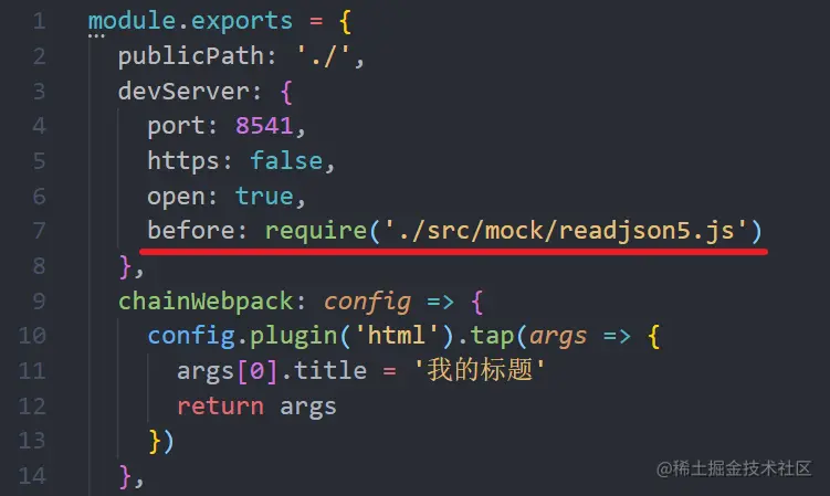 再瞅一眼目录结构中的 readjson5.js 文件,在这里我们读取JSON5的数据生成规则,再配合NodeJS和mock.js来开启一个服务