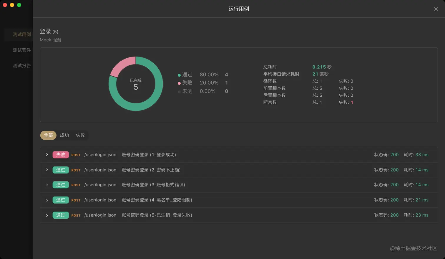 添加到登录接口,效果如下。如果想验证某个场景时,测试或者开发直接运行该用例即可。