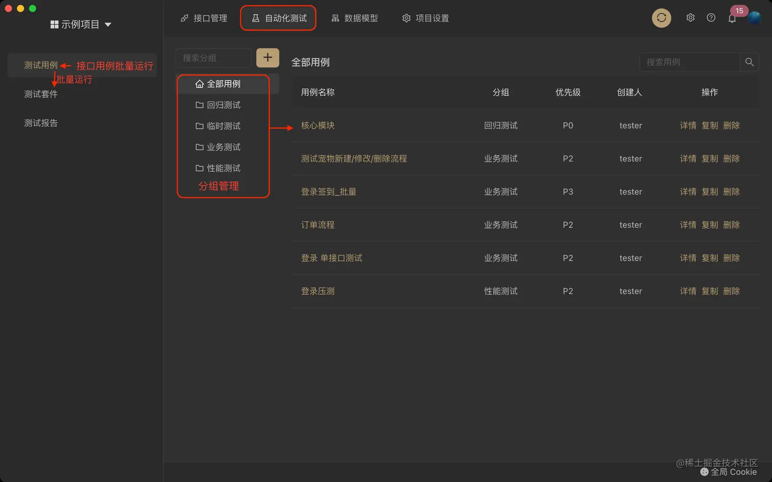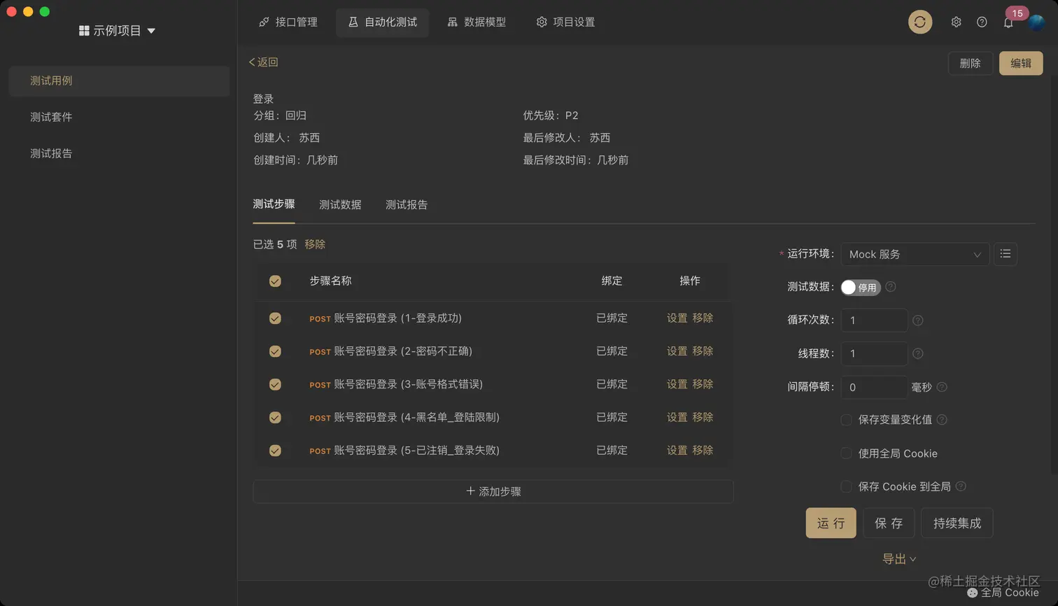 希望一次性运行多个接口用例,可以在自动化测试中进行集成测试。 图片 测试用例可以设置分类和分级,方便管理和分级运行。以我们团队为例,我们对自动化测试采取分级保障及分级运行的策略,4种优先级设置对我们来说非常方便。