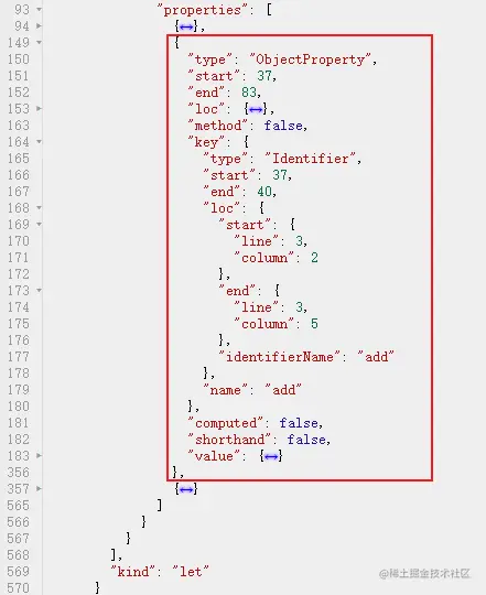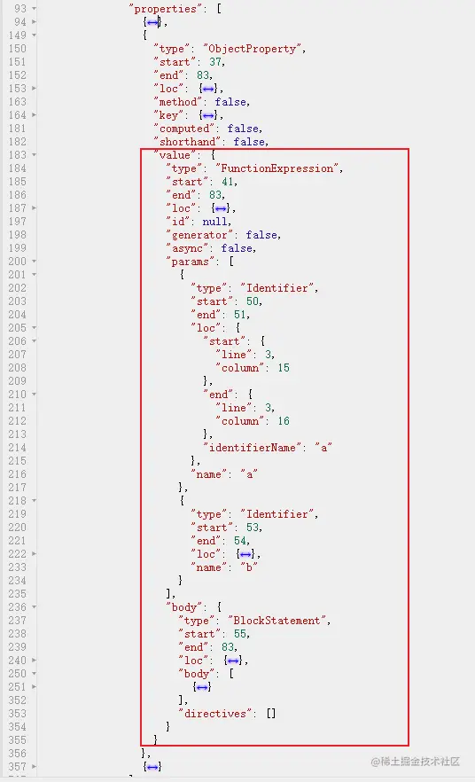 这一层显示的这些属性,前面已经介绍过了,不再赘述。关键点是 value节点,因为在原始代码中把一个函数表达式赋值给了对象的属性。查看解析后的函数: