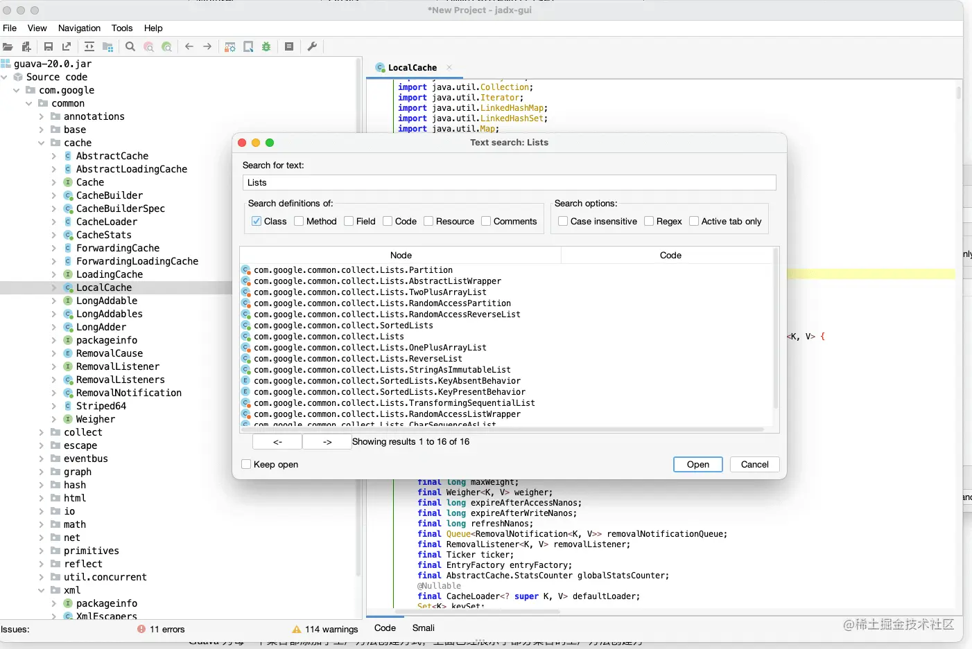 jadx 自带强大的搜索功能,支持多种匹配模式。