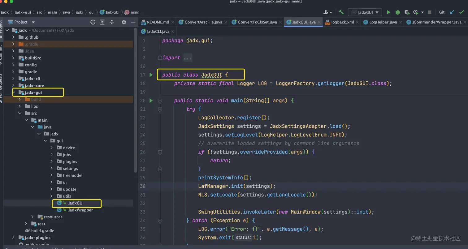 jadx 由 Java 语言编写,使用 Gradle 进行构建。克隆到本地之后,你可以直接使用 Gradle 命令进行构建: