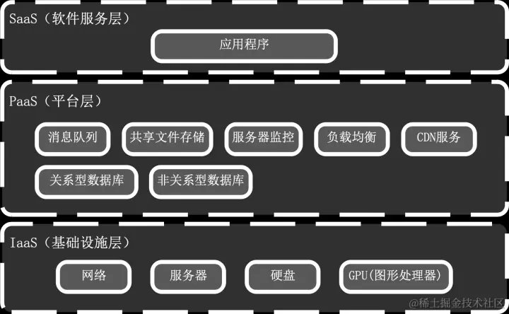 SaaS、PaaS、IaaS分层是目前比较认可的分层方式。