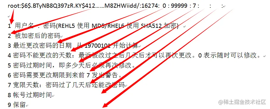 | 用户密码信息文件 | /etc/shadow | 因为passwd文件对所有用户是可读的,为安全起见把密码从passwd中分离出来放入这个单独的文件,该文件只有root用户拥有读权限,从而保证密码安全性 |