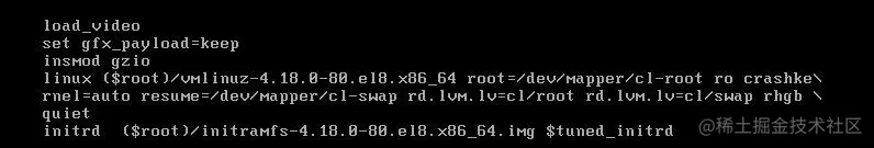 #开机时按任意键,即可进入此界面,光标选择第一条,e表示进入编辑模式