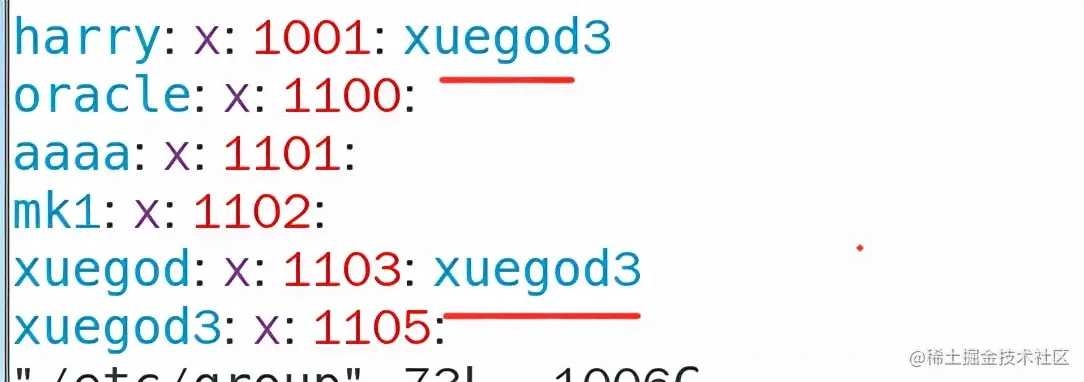 如果一个组有多个成员,我们是可以在/etc/group文件中最后一个字段看到的