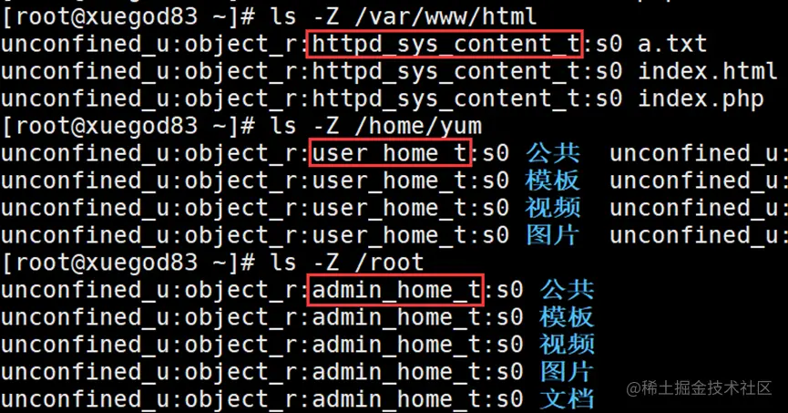 selinux 控制的文件类型权限非常细,httpd无权限访问其他文件类型,黑客即使入侵了httpd,也没有权限访问其他类型文件,不管你是不是属组属主有rwx权限,都没用。