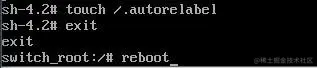 扩展:创建此文件:开启selinux的情况下需要创建此文件,因为在rd.break环境下SELinux是不生效的。在不生效的情况下我们修改了用户的密码,也就是修改了/etc/shadow文件,所以密码文件的安全上下文的特性会被取消。如果没有让系统在启动时自动恢复SELinux的安全上下文,系统会报错“无法登录”,所以SELinux在Enforcing模式下的时候(如在disabled模式下则不用),在根目录下touch隐藏文件autorelabel会让系统在重启时以SELinux默认类型重新写入SELinux安全上下文。