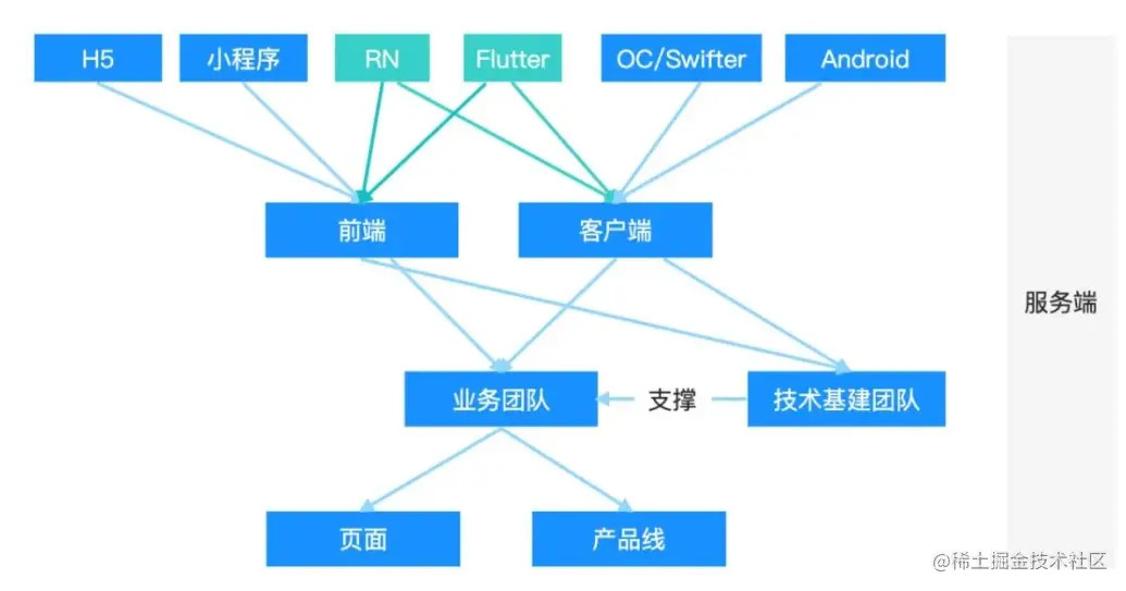 - 优势:RN 拥有一次编写三端执行和动态部署和逻辑下发到客户端的能力,解决客户端版本审核及更新效率低、三端开发技术方案不一致、三端公共需求存在重复劳动等问题