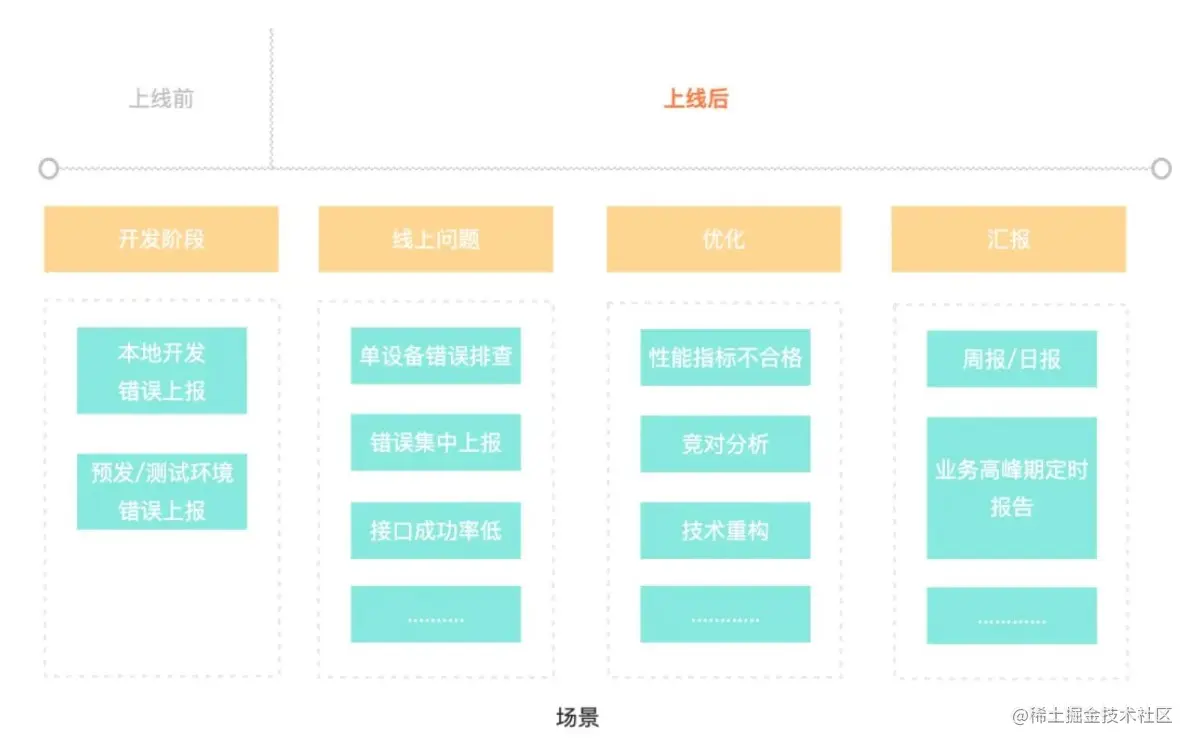 如果把应用性能监控平台的使用场景分为上线前和**上线后,**大致罗列了以上场景。