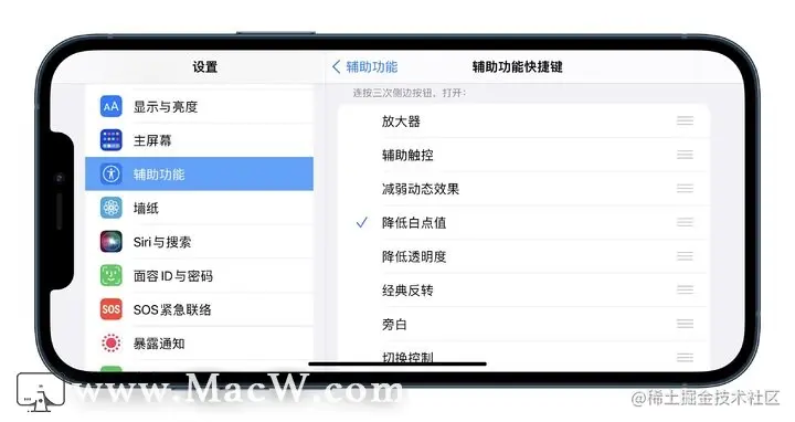 接着,在辅助功能快捷键中,勾选「降低白点值」,下次连按 3 次电源键,便可打开/关闭这一功能了。