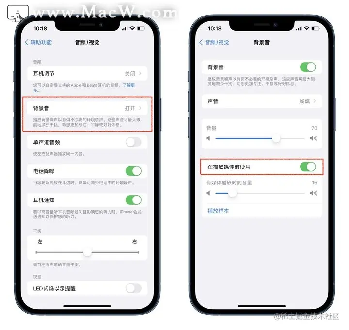 这是 iOS 15 的一项新功能。可循环播放背景声,以盖过恼人的环境噪音。起到放松、平静的效果,让你更加专注。
