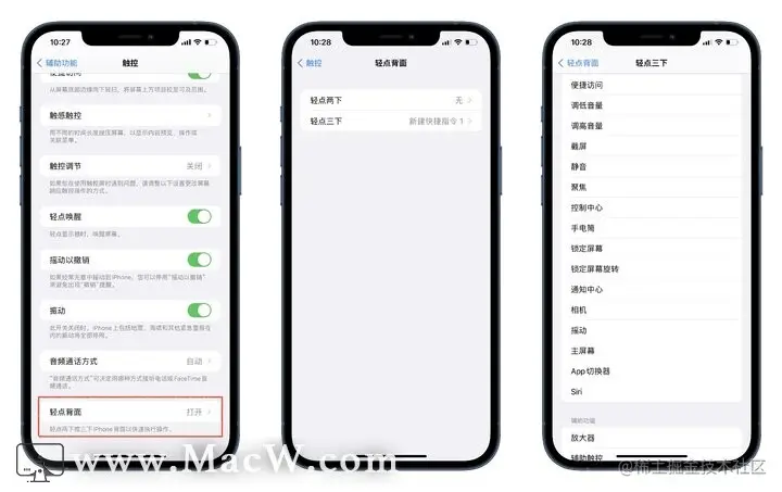 在触控功能中,下滑至最末找到「轻点背面」,即可双击或三击手机背面,运行指定功能了。(该功能目前只有 iPhone X 及更新的机型支持)。