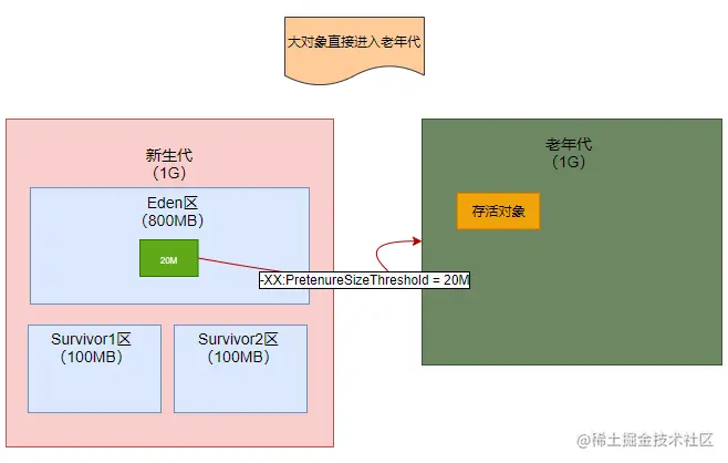 可以设置新生代对象的最大占用内存,一旦超过就会被移入到老年代,这样可以避免大对象频繁躲过minorGC,造成大对象被不停地倒来倒去,浪费时间。