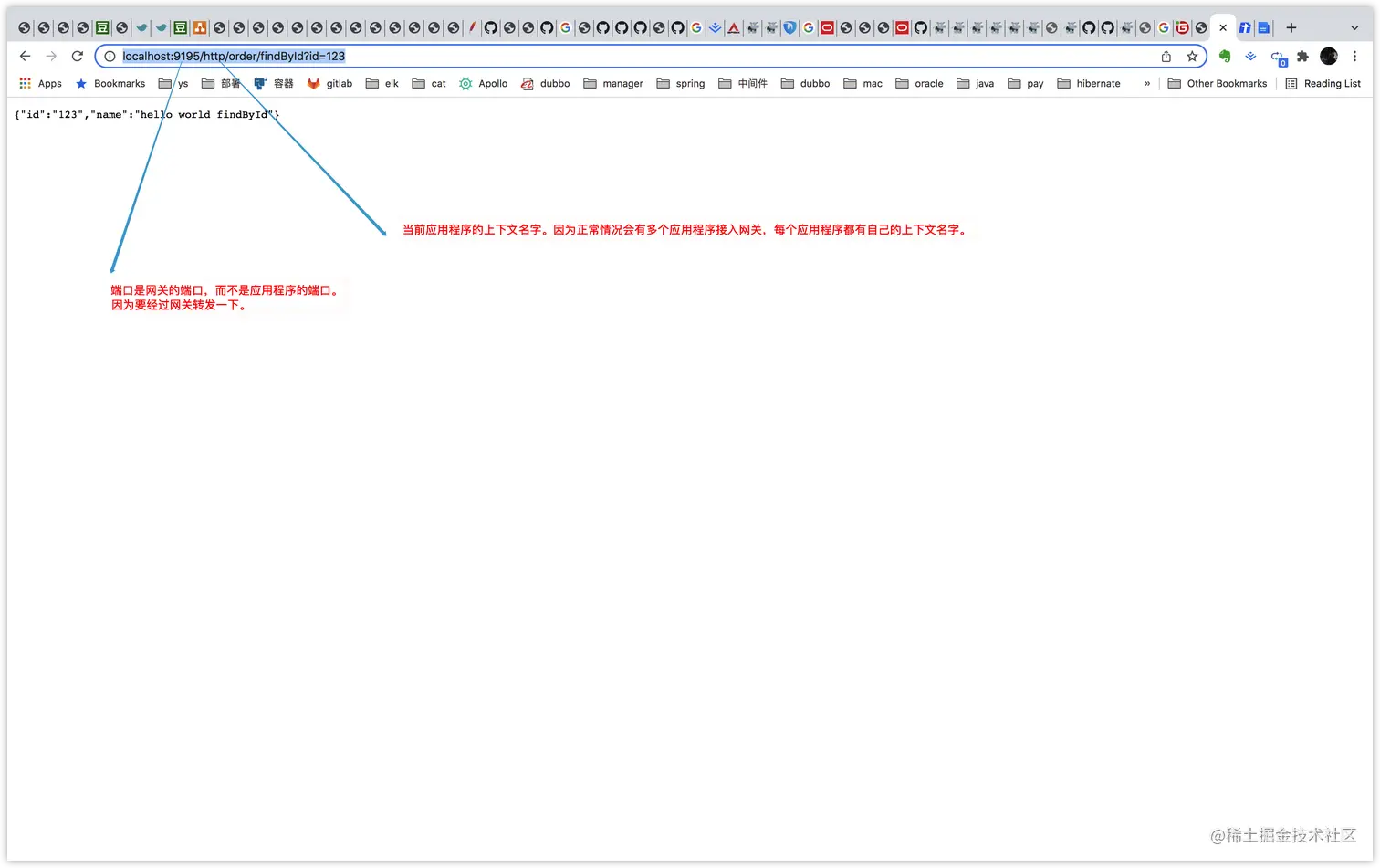 浏览器访问网址——》网关——》应用程序。