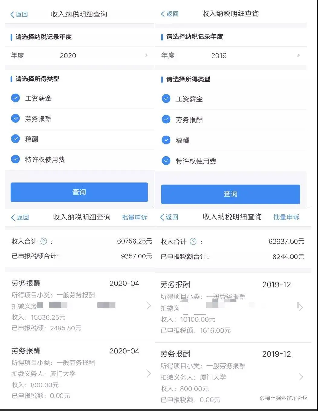 工资使用个人所得税app截图(截图收入未减去厦大每月800的补贴)