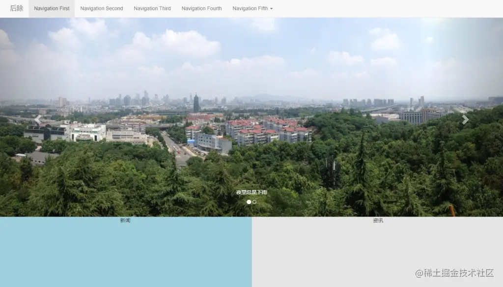 试着组合栅格系统 + 导航栏 + 轮播布局一个响应式页面。