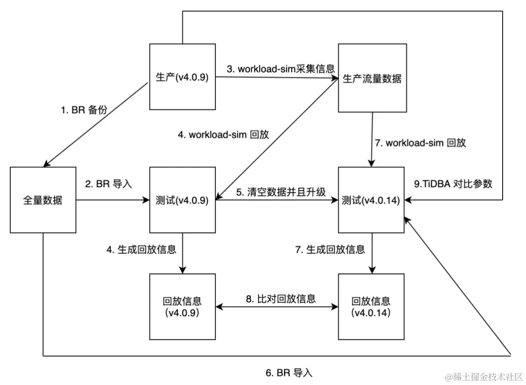接下来我们看看实战演练。案例中的 TiDB 用户是中文互联网高质量的问答社区和创作者聚集的原创内容平台,是中文最大的问答社区。选择升级的原因是旧集群版本较早,担心遇到修复的已知问题,造成运维事故;此外客户需要将所有业务统一到相同版本,方便统一运维管理。而待升级的集群承载其商广平台业务,是其最重要的商业集群之一,因此客户格外重视此次升级的安全保障。因此我们推荐客户采用 TiDBA + PCC + Workload-sim 的详尽策略,最终客户采用了 TiDBA 和 Workload-sim 对升级进行了测试验证。