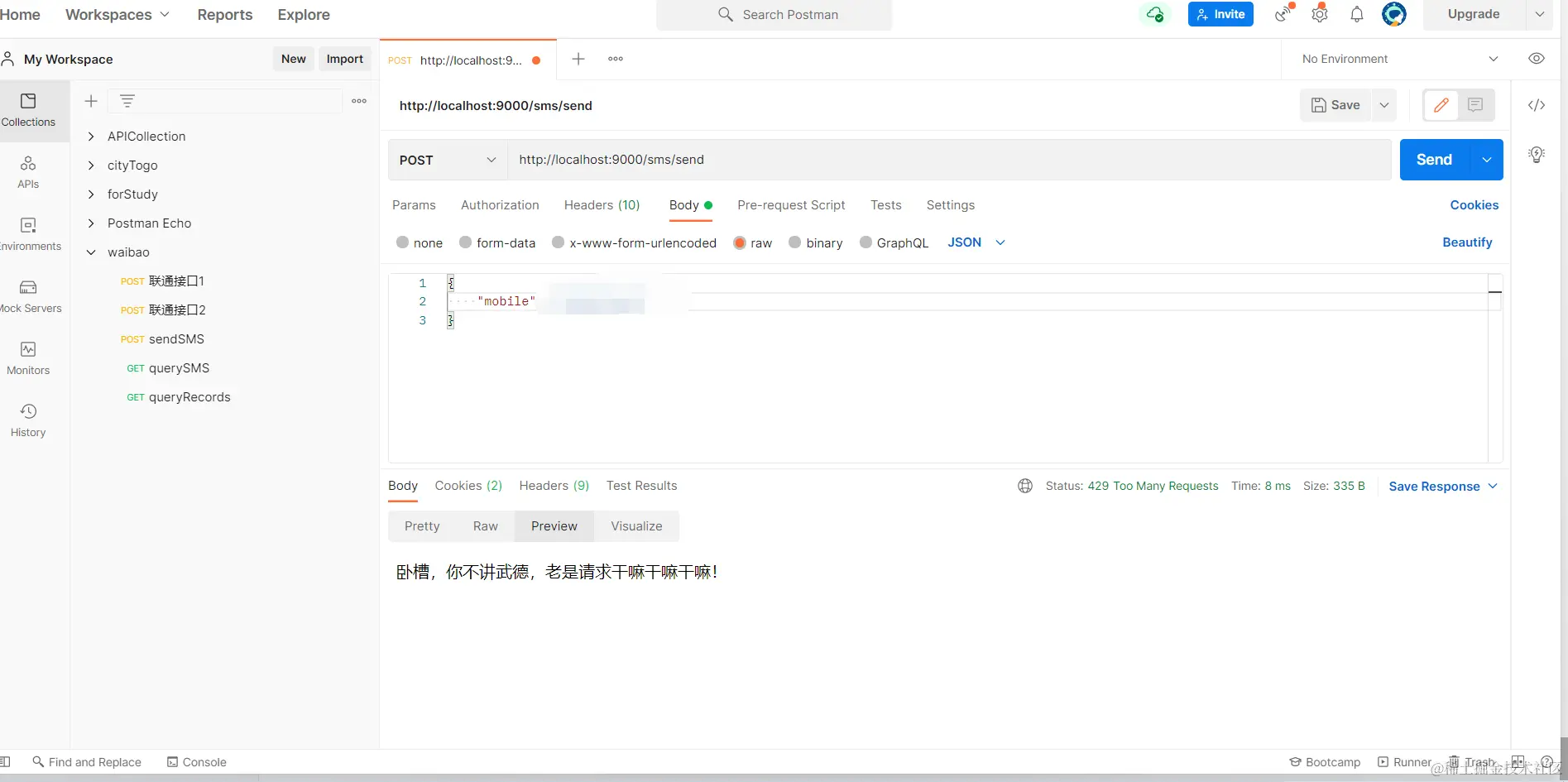 message: '卧槽,你不讲武德,老是请求干嘛干嘛干嘛!',