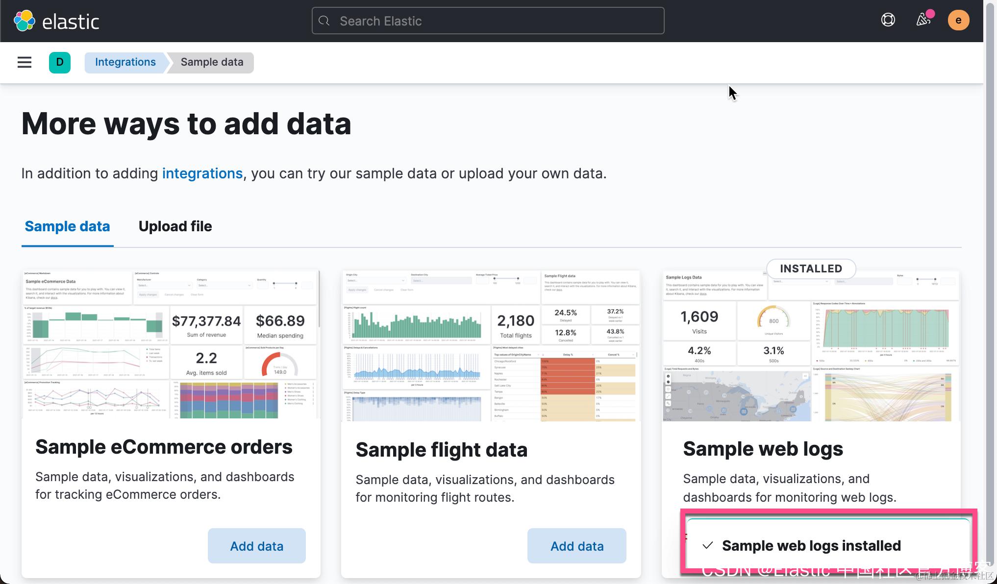 这样我们就导入了一个叫做 kibana_sample_data_logs 的索引。