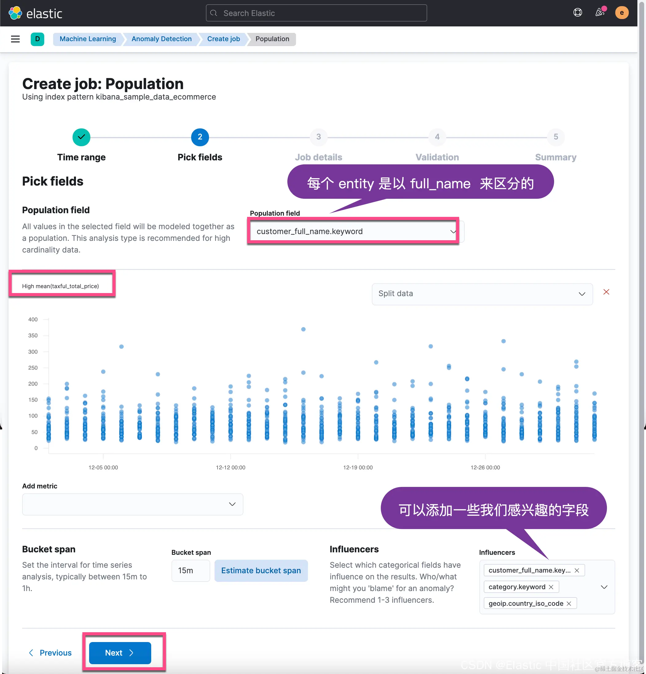 在上面的 Discover 中,我们发现这个 eCommerce 的示例数据集非常适合分析每个个体的行为。在这个数据集中,每个个体就是按照每个客户的姓名来进行划分的。在我之前的一篇文章中,我们看到的是这样的图: