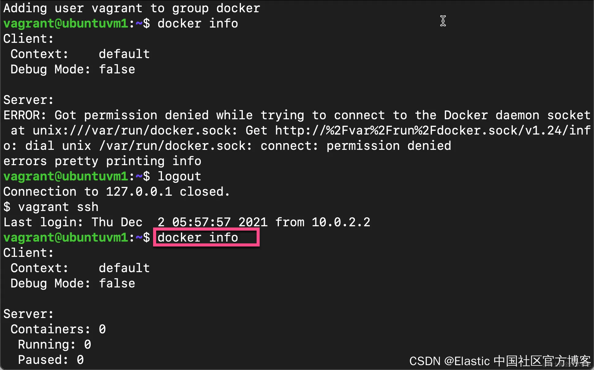 vagrant@ubuntuvm1:~$ docker info