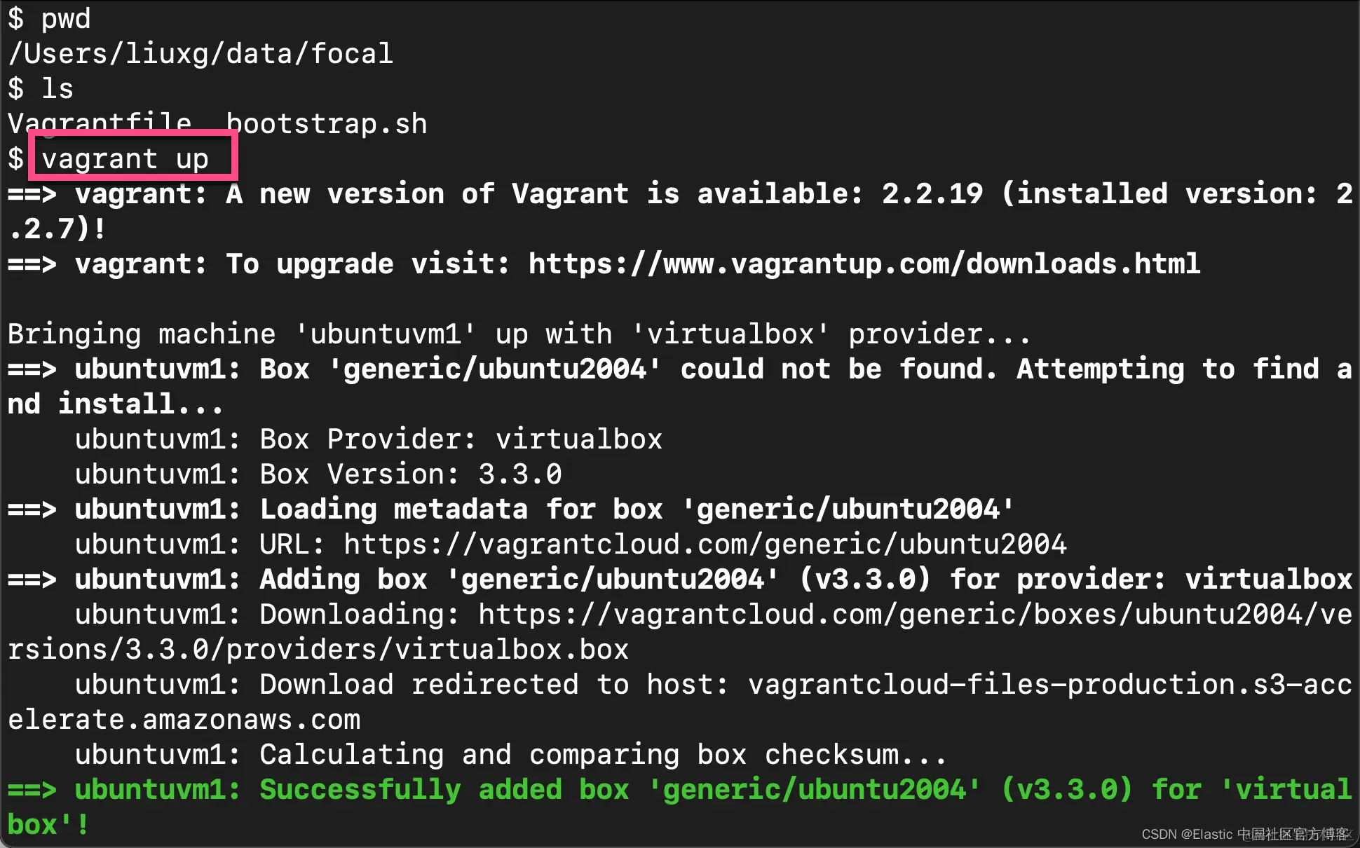 在之前的文章 “Elastic:用 Docker 部署 Elastic Stack” 中,我详述了如何使用 Docker 部署 Elastic Stack。我也在之前的文章 “Elastic:如何在 AWS 上一步一步地安装 Elastic Stack” 讲述了如何在 Ubuntu OS 中安装 Elastic Stack。在今天的文章中,我想在 Ubuntu OS 系统的机器上一步一步地安装 Docker,并进而把 Elastic Stack 运行于 Docker 容器中。对于还没有 Ubuntu OS 的开发者来说,我将使用 Vagrant 来安装 Ubuntu OS。