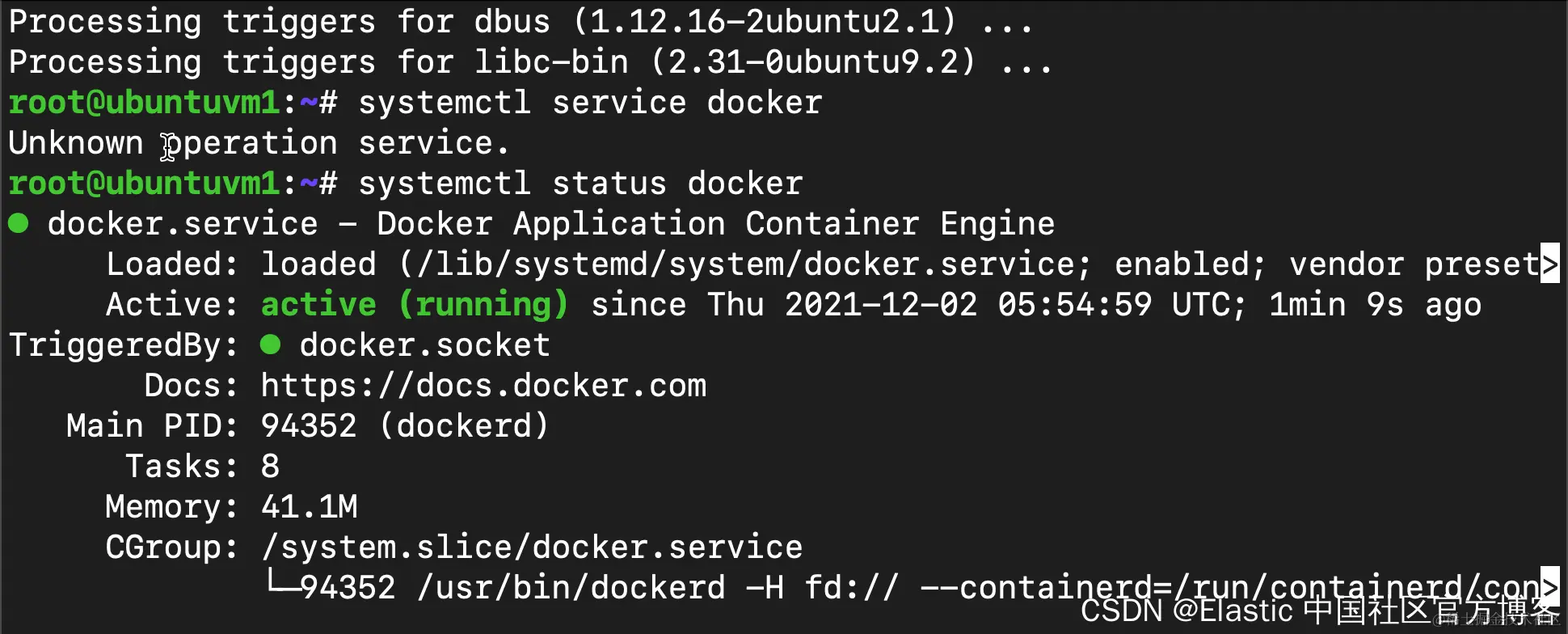 一旦 docker 安装完毕,它会自动启动 docker 服务: