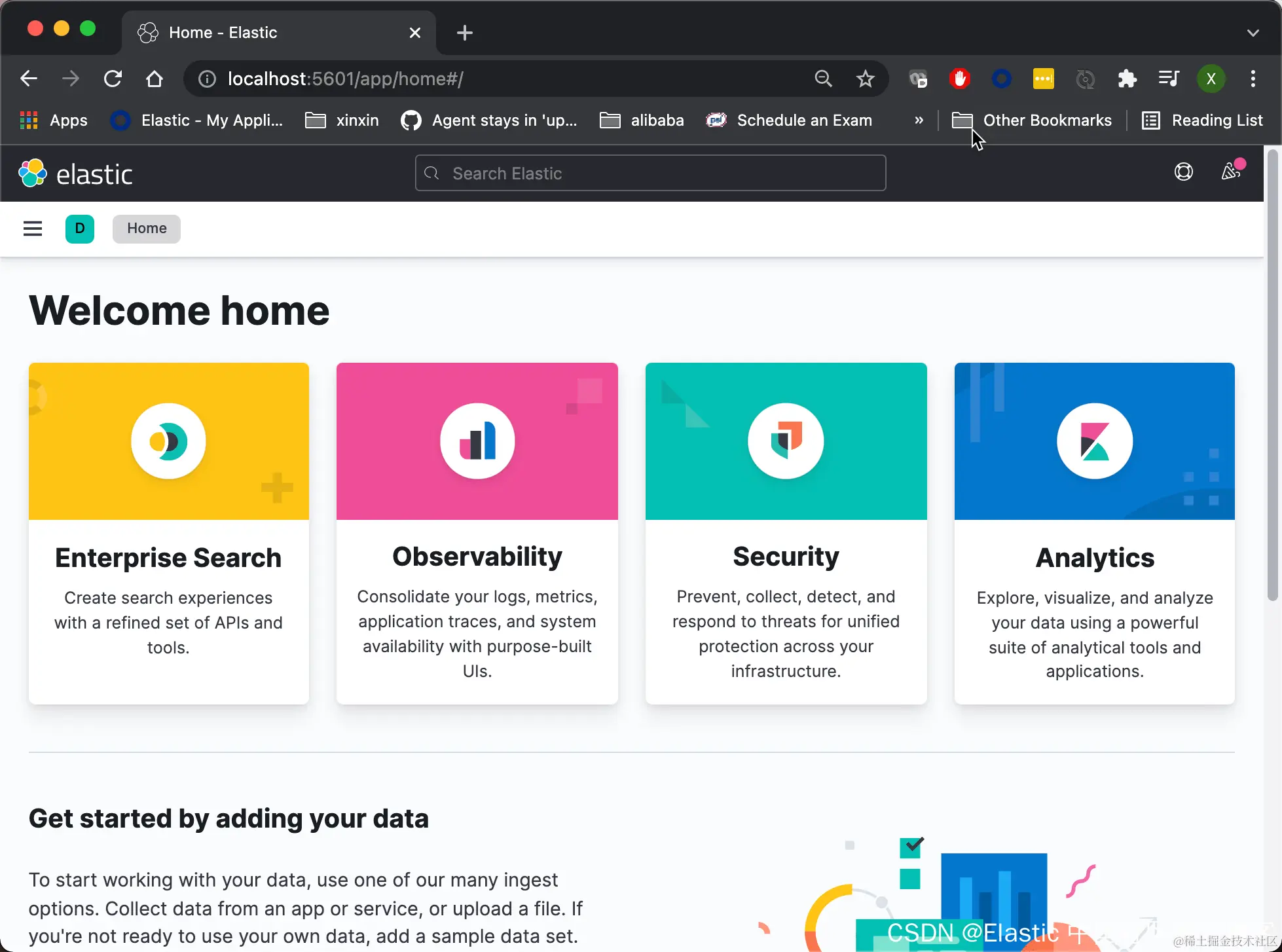 如果我们进行的顺利,我们可以在电脑上打开浏览器,并打开地址 http://localhost:5601