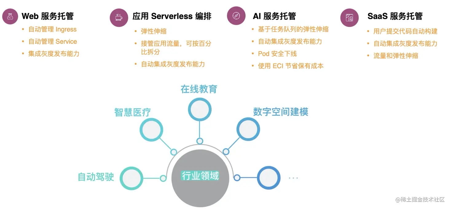 向下我们通过虚拟节点结合 ECI 实现了 IaaS 资源免运维,那么向上如何聚焦业务逻辑呢?其实就是以应用为核心。