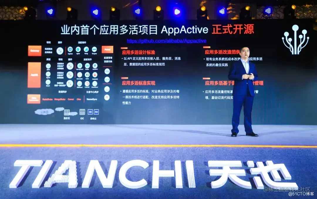大会上,阿里云正式发布业内首个多活领域开源项目 AppActive,AppActive 建立在阿里巴巴大规模生产应用系统实践之上,经过 9 年的演进,内部实践经验发展商业化产品 AHAS,在结合阿里云商业化服务外部多家客户和社区的最佳实践之后提炼开源,具备高可靠、可拓展等特性。同时,发布业内首本聚焦多活领域的 《应用多活技术白皮书》 ,打造云原生领域容灾新标准。