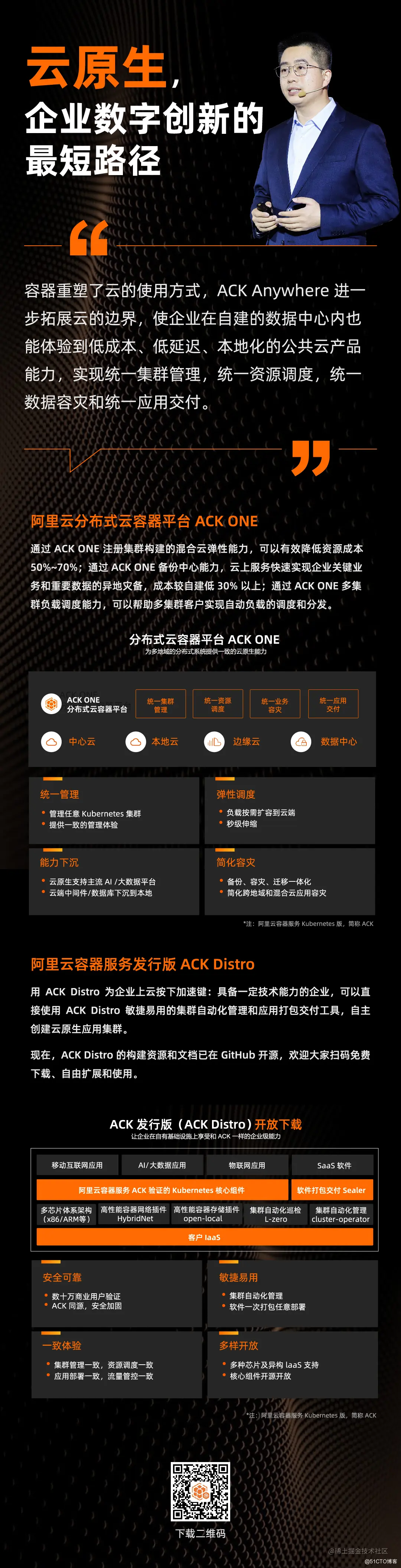 “ 容器重塑了云的使用方式,阿里云 ACK Anywhere 进一步拓展云的边界,使企业在自建的数据中心内也能体验到低成本、低延迟、本地化的公共云产品能力,实现统一集群管理,统一资源调度,统一数据容灾和统一应用交付。 ”