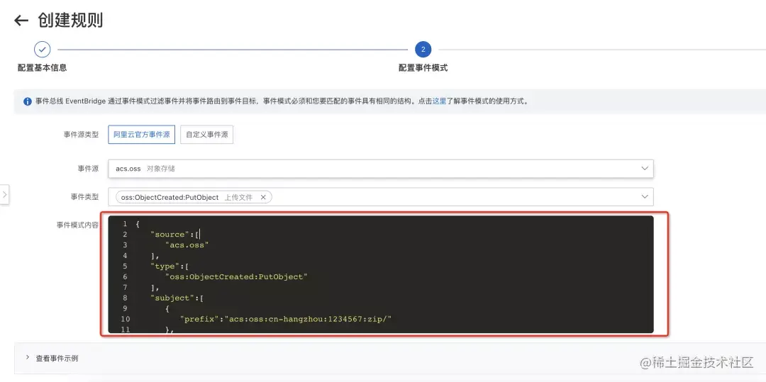 - 配置事件模式,事件模式即事件的筛选规则,需认真配置,否则会造成循环触发。