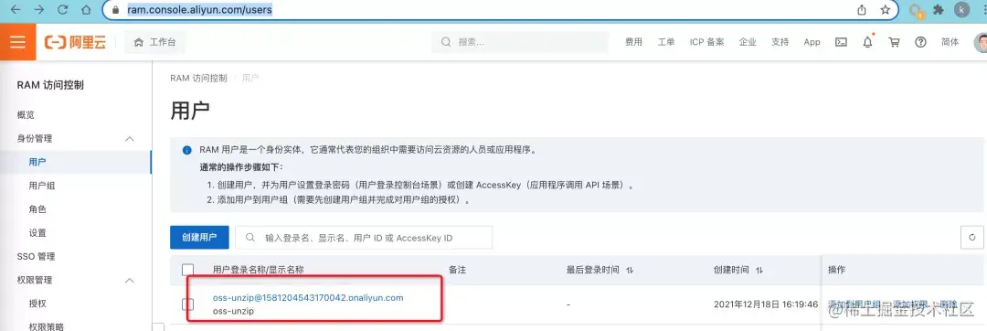 - 创建好账号以后再打开 RAM 控制台**[1]** 能看到刚才创建的账号信息。