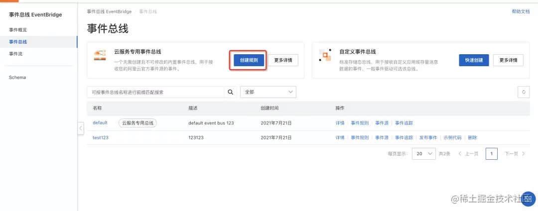 EB 总线分为云服务总线和自定义总线,云服务总线用于接受云服务事件 E.g. OSS ,自定义总线用于接受自定义事件 E.g. 解压完成信息。