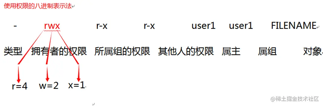 rwx r-- r--: 文件所有者具有读、写与执行的权限,用户组里用户及其他用户则具有读取的权限